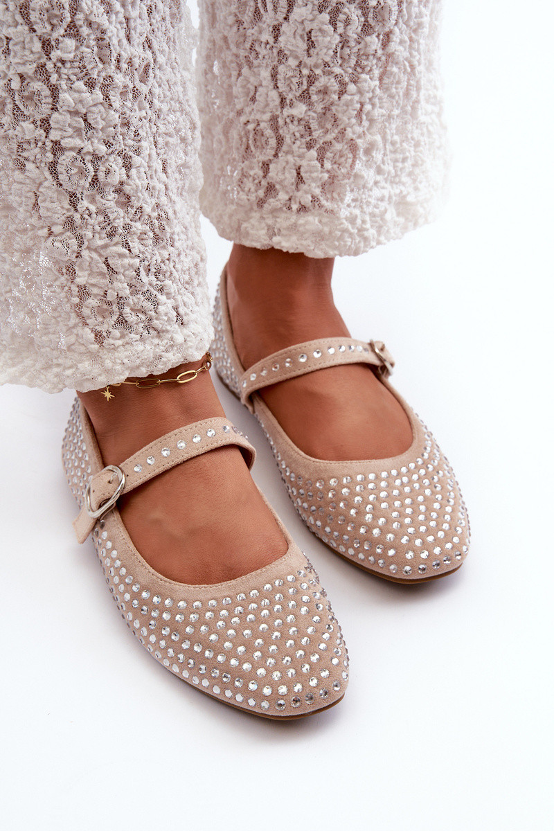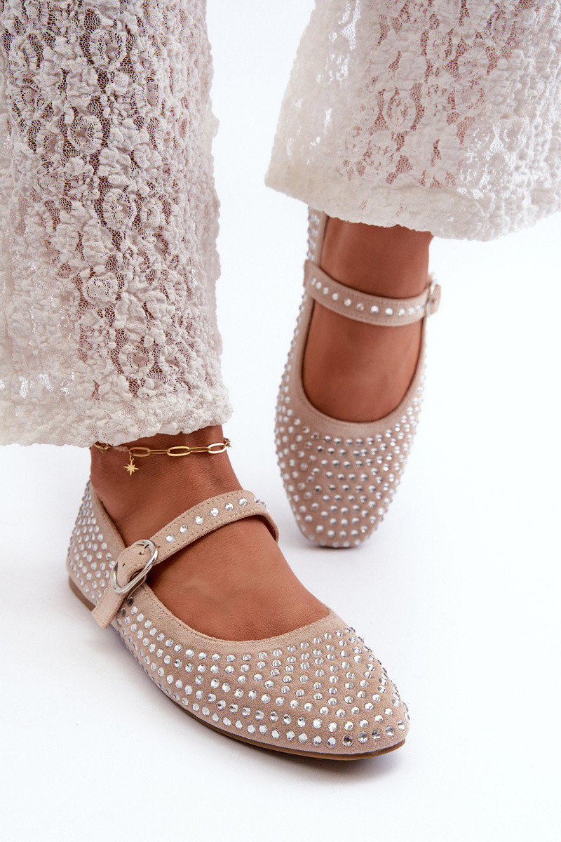 Ballerine color sabbia in suede artificiale, decorate con cristalli Tinara