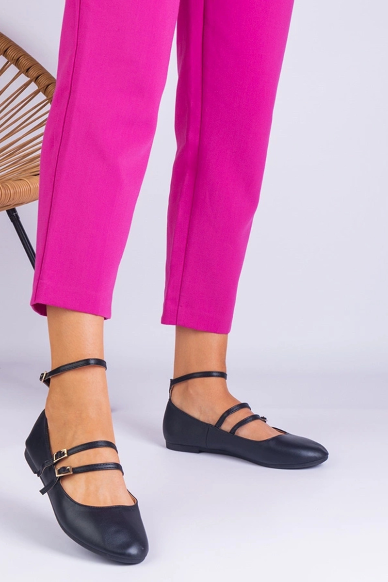 Ballerine nere in pelle sintetica con fibbie Vitoldora