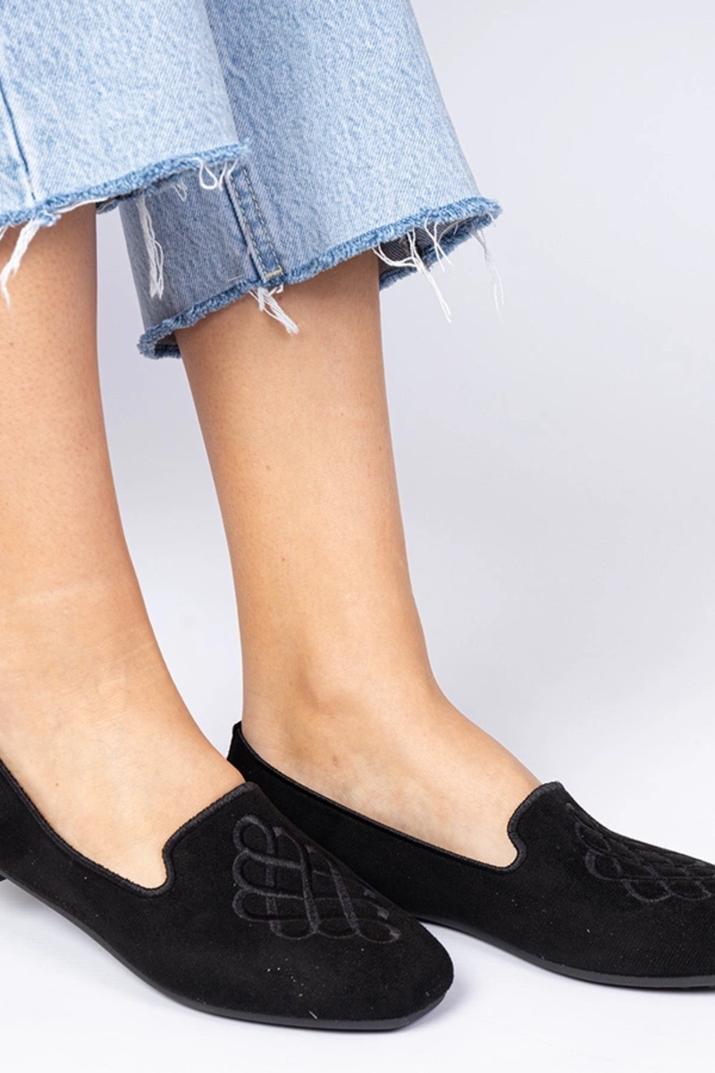 Ballerine nere da donna in camoscio artificiale con ricami Ronna