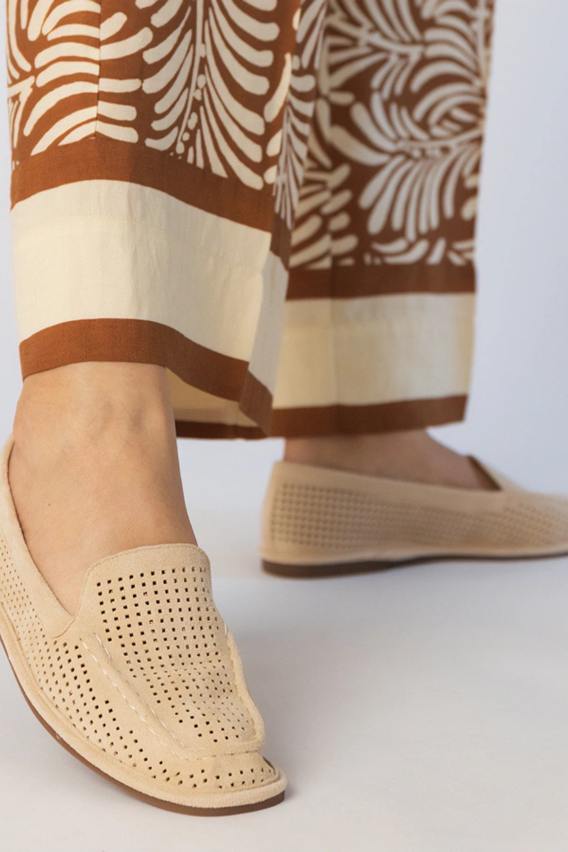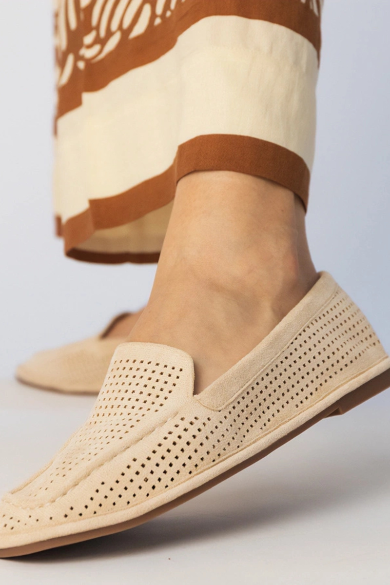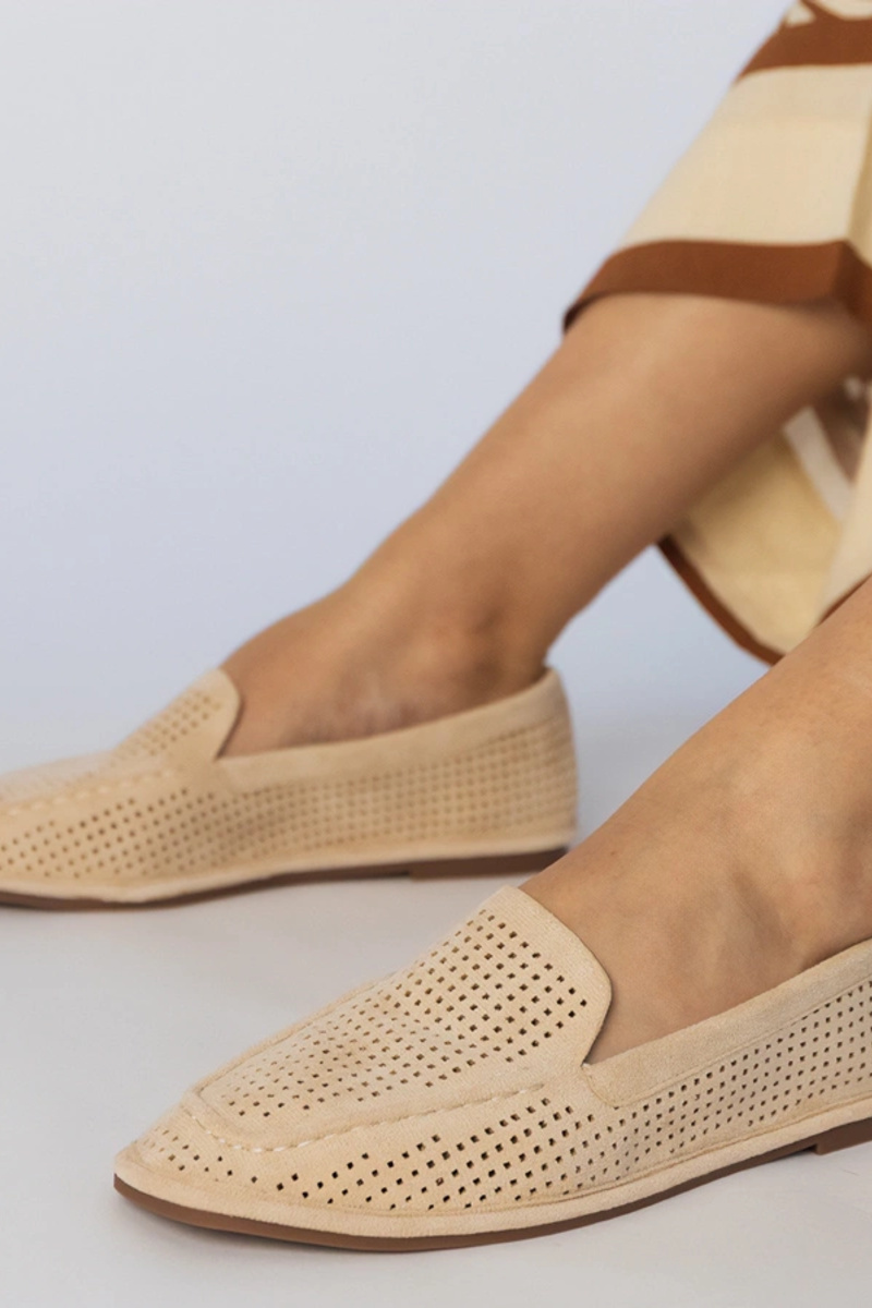 Mocassini color caramello in camoscio sintetico traforati, "Stanila"
