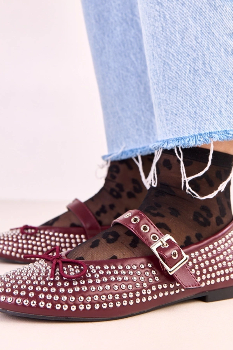 Ballerine rosse scure Mylie decorate con borchie e fiocco