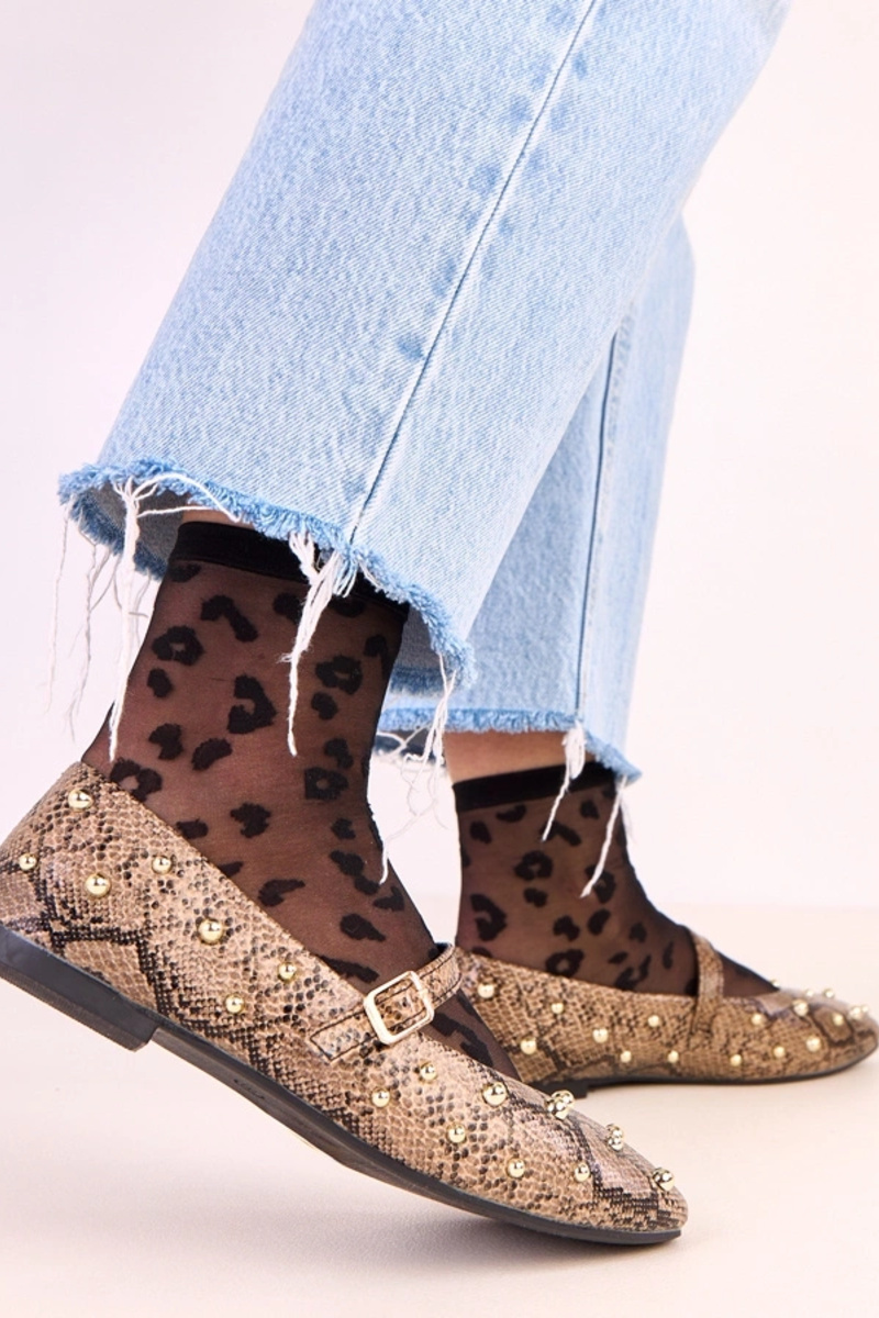 Ballerine marroni Selena con motivo in pelle di serpente decorate con perline