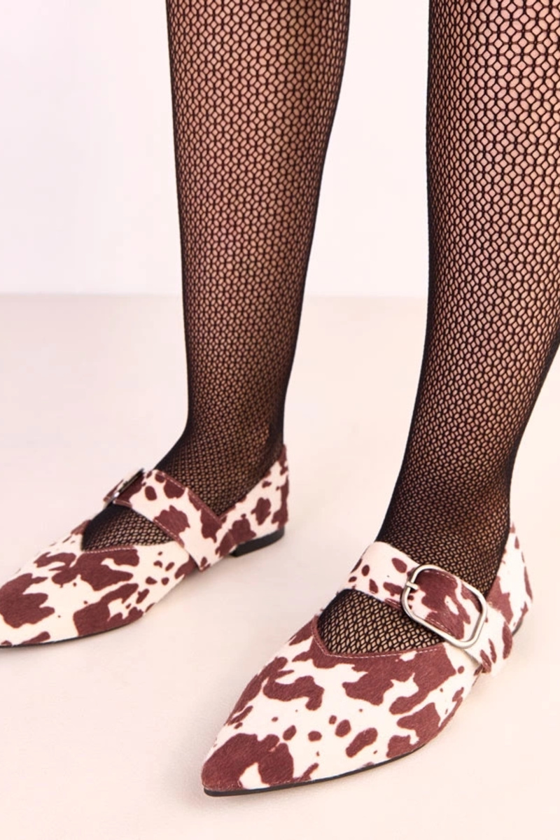 Ballerine marroni con macchie di mucca e fibbia Lena