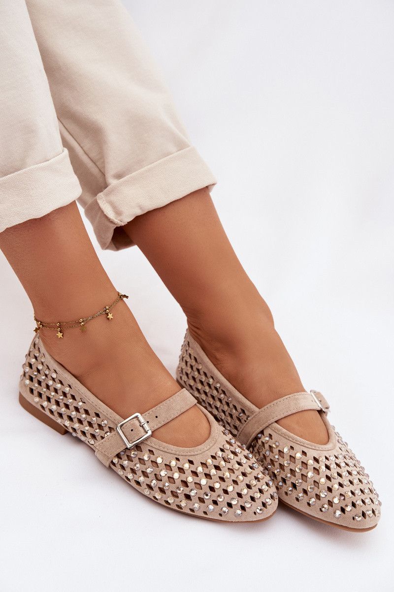 Ballerine Femminile con elementi traforati con gli occhi scintillanti I Strisceem beige INilvessa