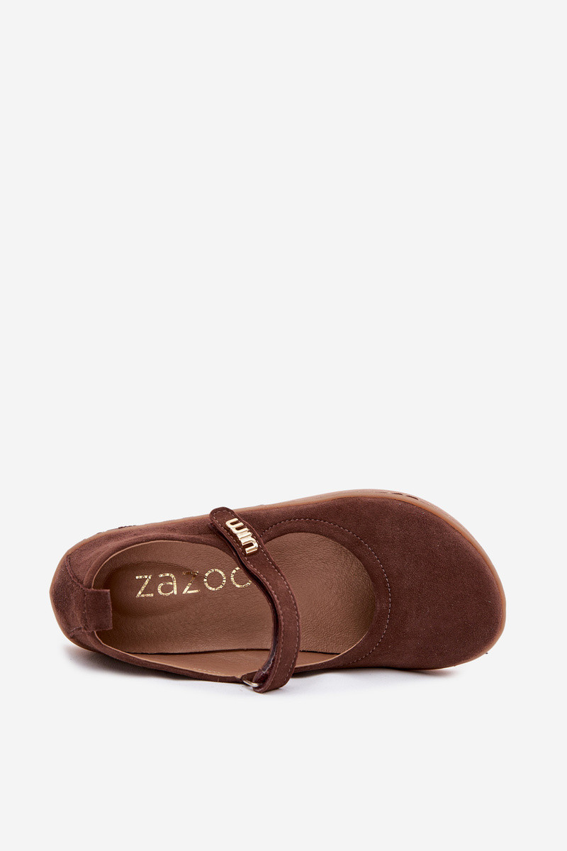Ballerine in pelle scamosciata Barefoot con cinturini Zazoo 10206 color sabbia