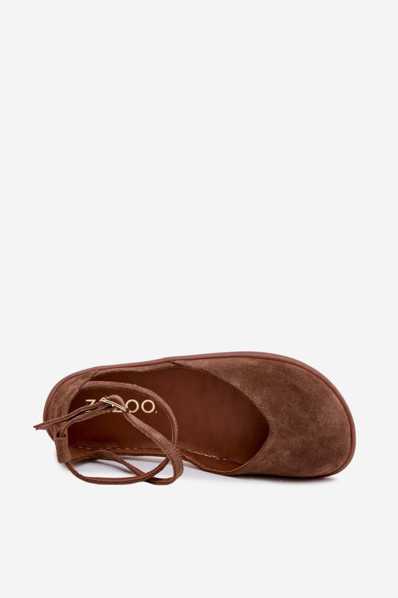 Ballerine da donna in suede sintetico con cinturini Zazoo 320 color marrone