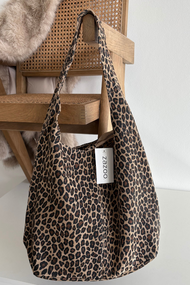Borsa in suede naturale con motivo leopardato color avorio Sanea
