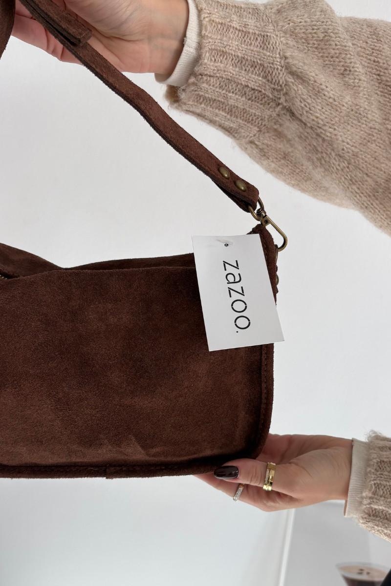 Borsa in pelle scamosciata decorata con strass, marrone Savra