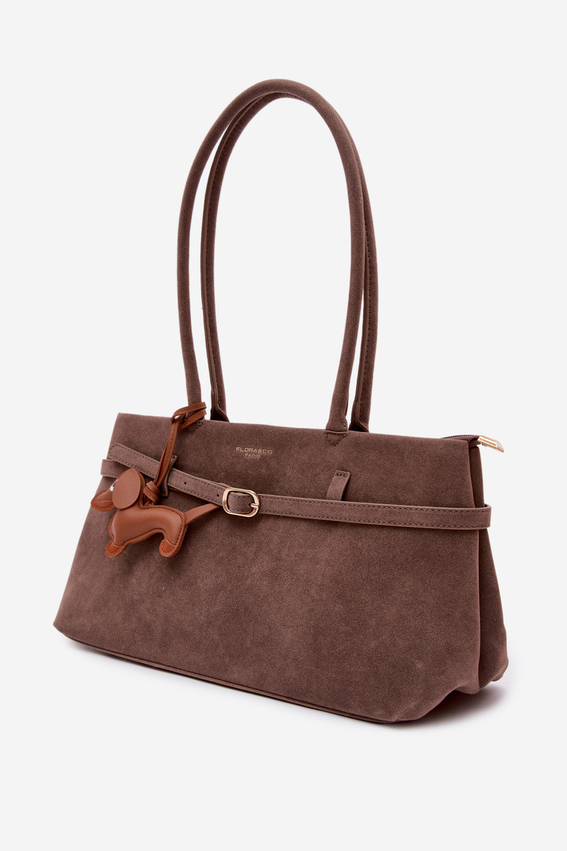 Borsa con imitazione di pelle scamosciata con zip color sabbia scuro Noellea