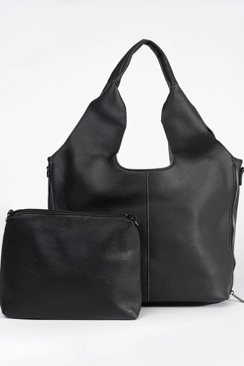 Elegante nero borsetta shopper ecopelle