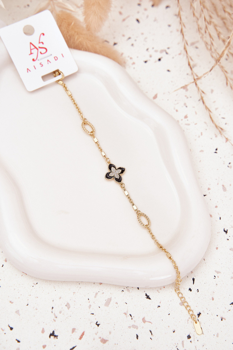 Bracciale con motivi di trifoglio in acciaio chirurgico color oro