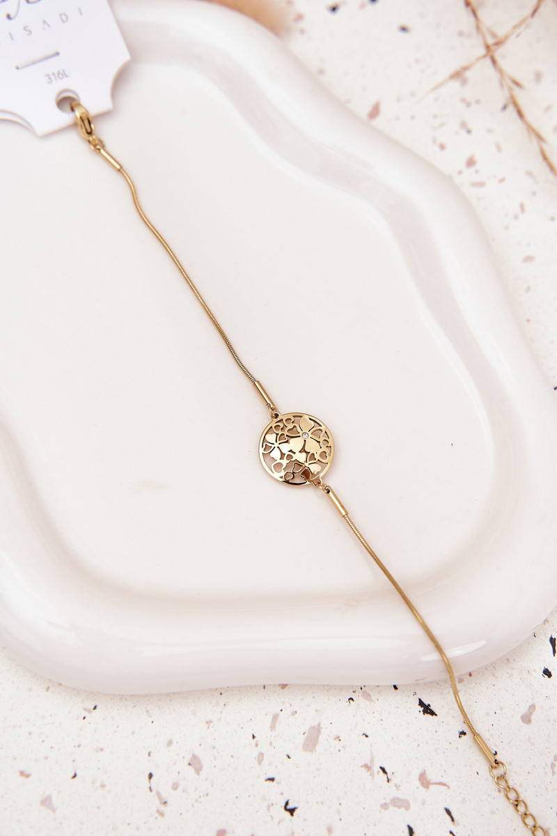 Bracciale da donna con ciondolo a forma di anello e motivi floreali color oro