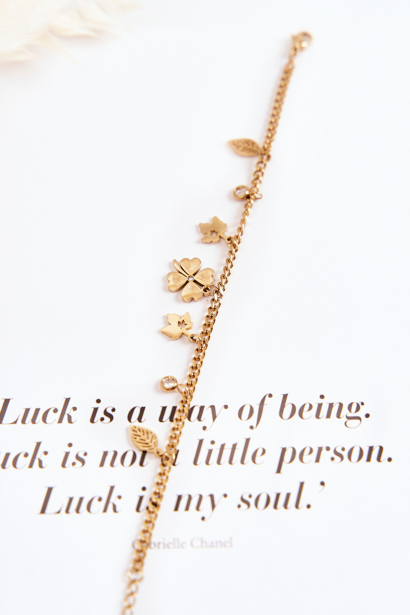 Alla moda Un braccialetto Con Trifoglio E le foglie colore dorato
