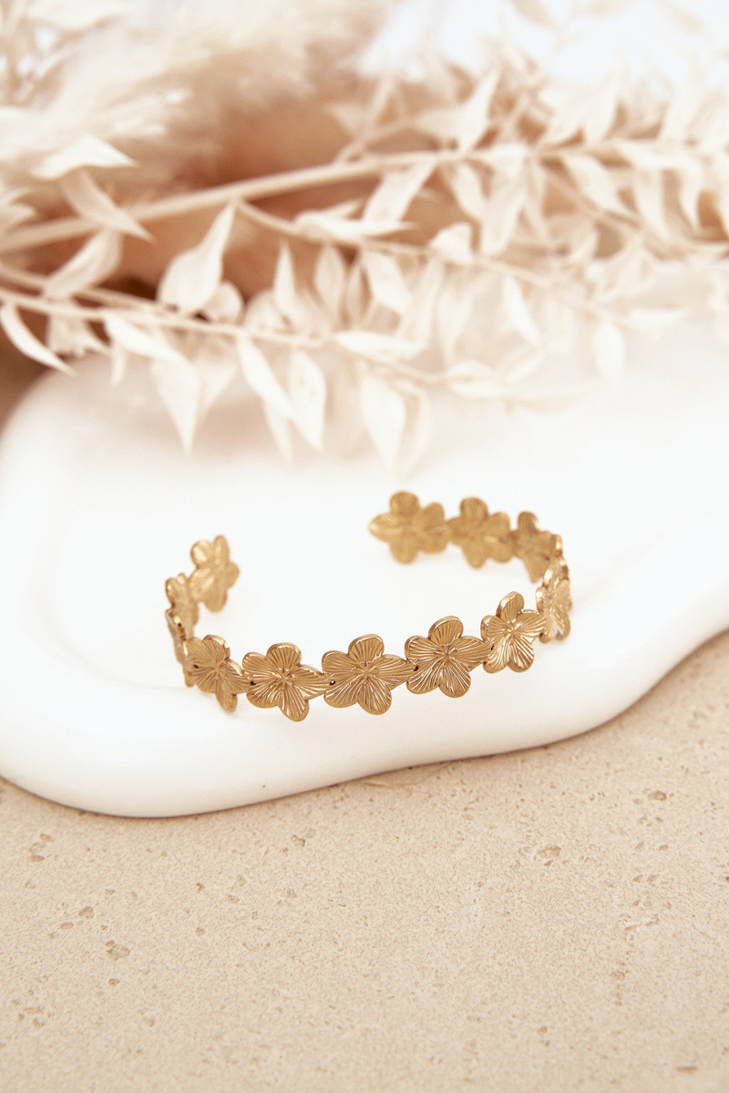 Un braccialetto Femminile dall acciaio inossidabile con motivi florealiuszki colore dorato