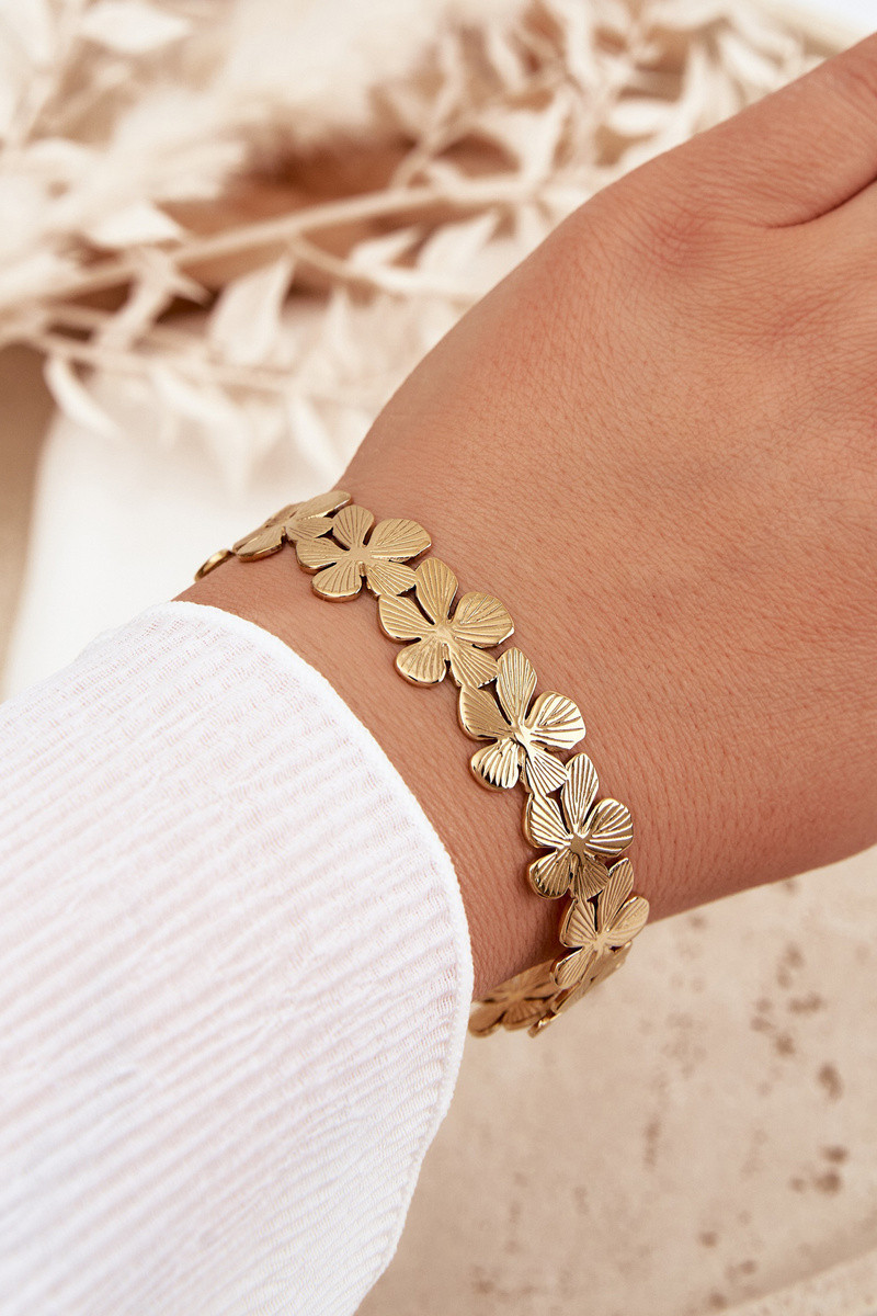 Un braccialetto Femminile dall acciaio inossidabile con fiori colore dorato