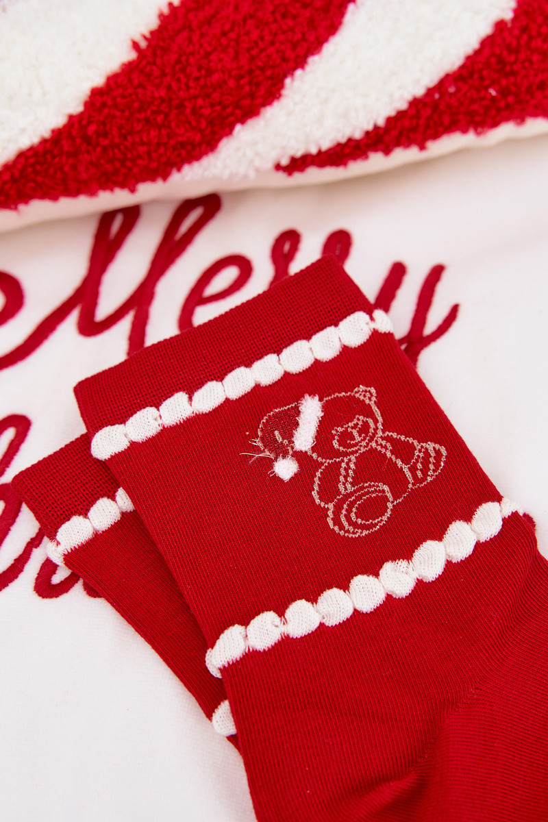 Calzini natalizi da donna rossi con orsetti e Babbo Natale