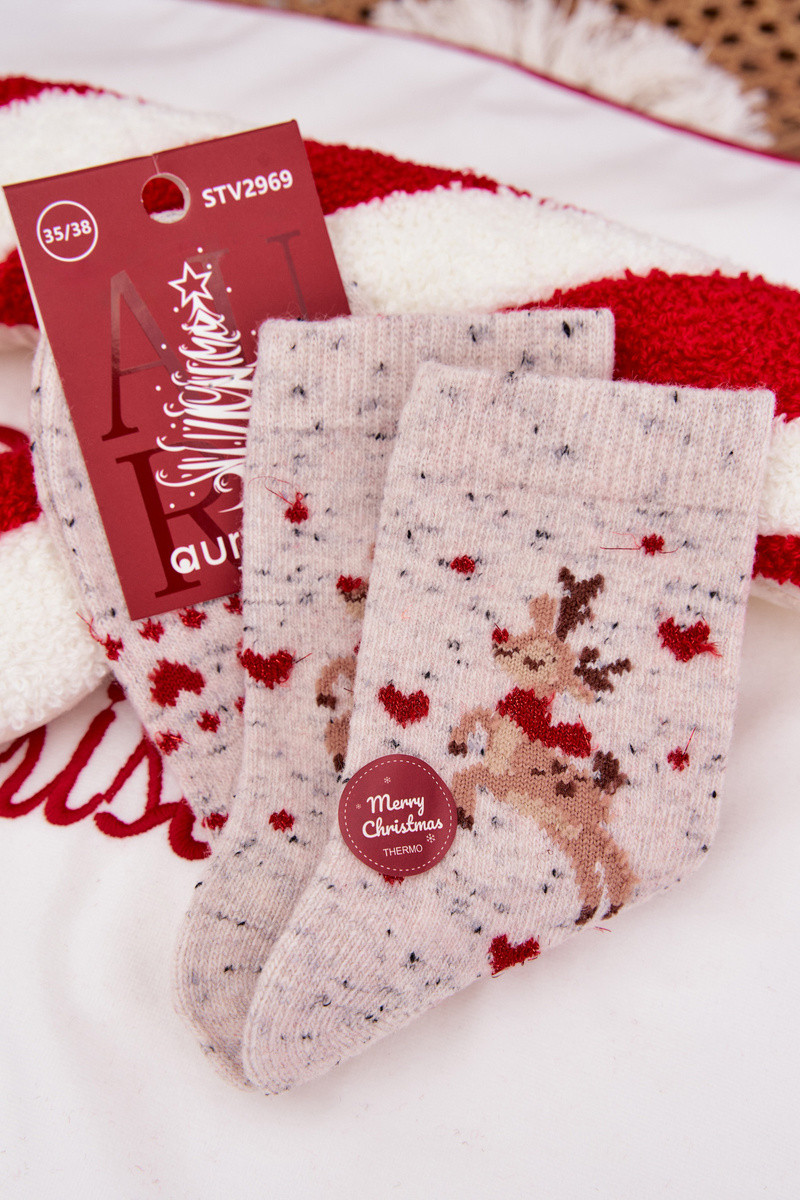 Calzini natalizi da donna con renne e cuoricini, in lana, grigi