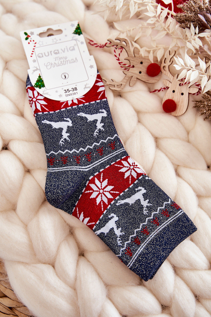 Calzini natalizi da donna con lucentezza Renna blu scuro