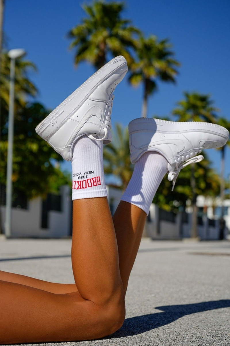 Calze da donna bianche con scritta Brooklyn