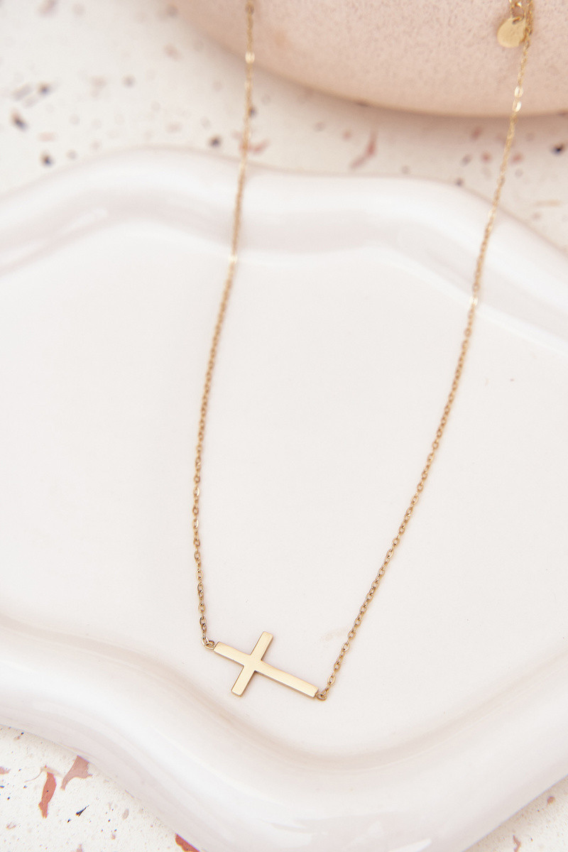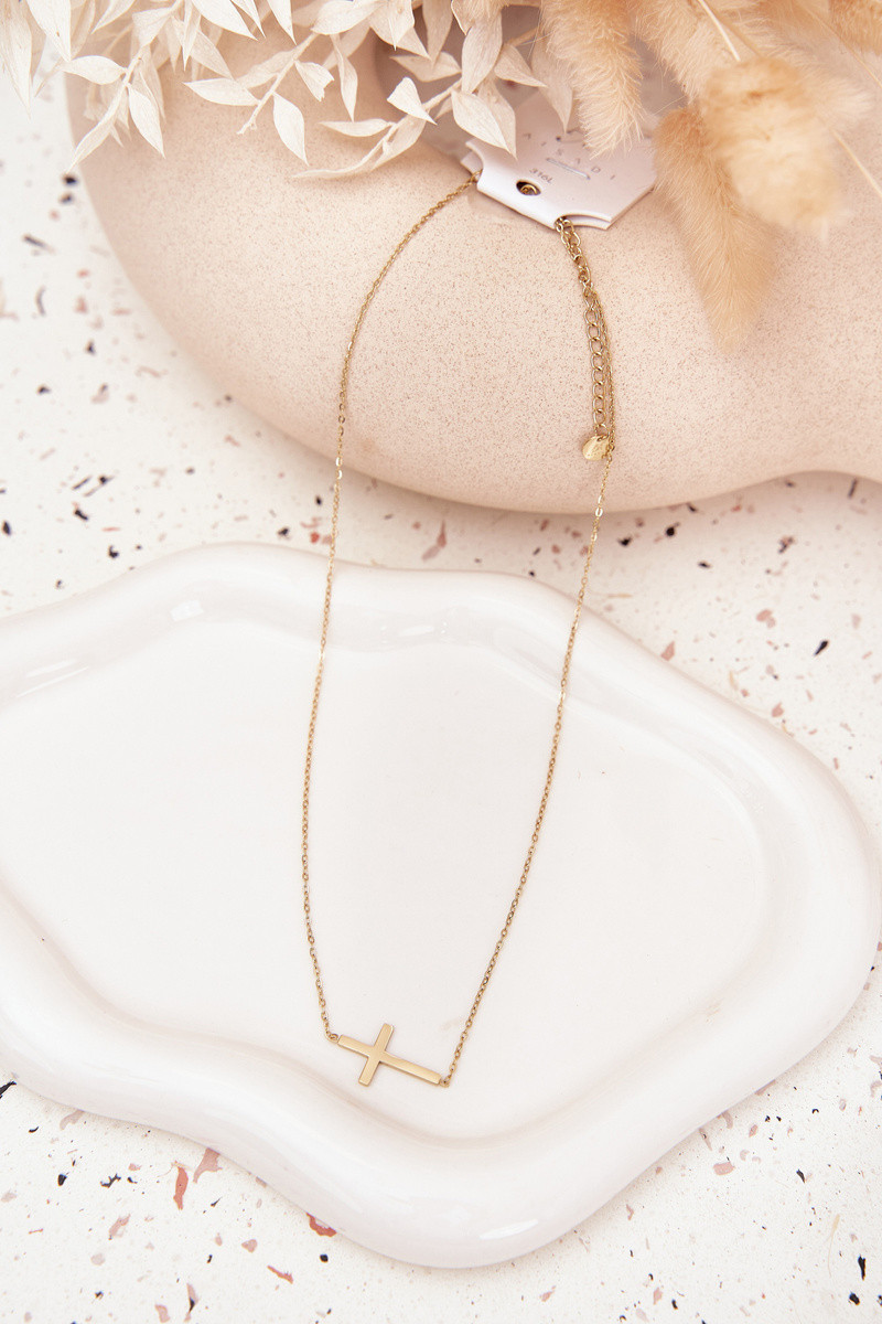 Collana con croce in acciaio chirurgico color oro