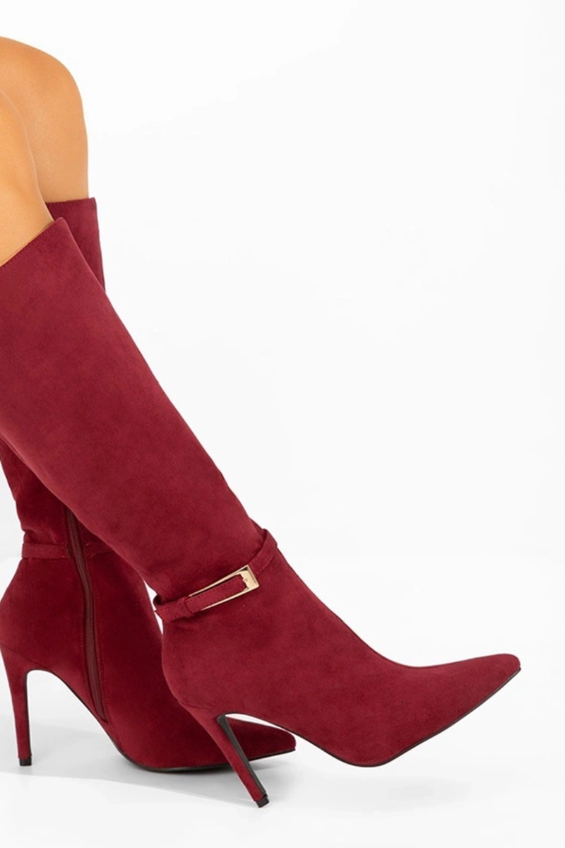 Stivali lunghi color bordeaux con fibbia decorativa Arielle