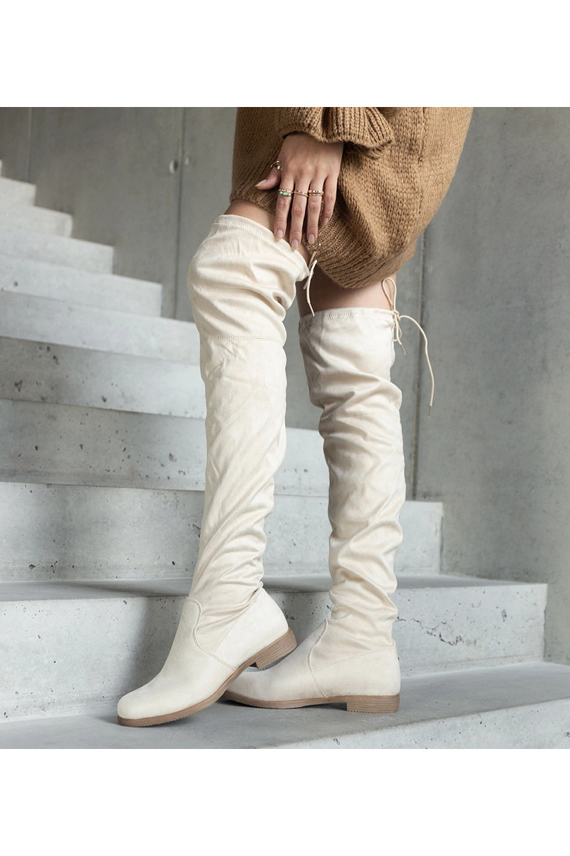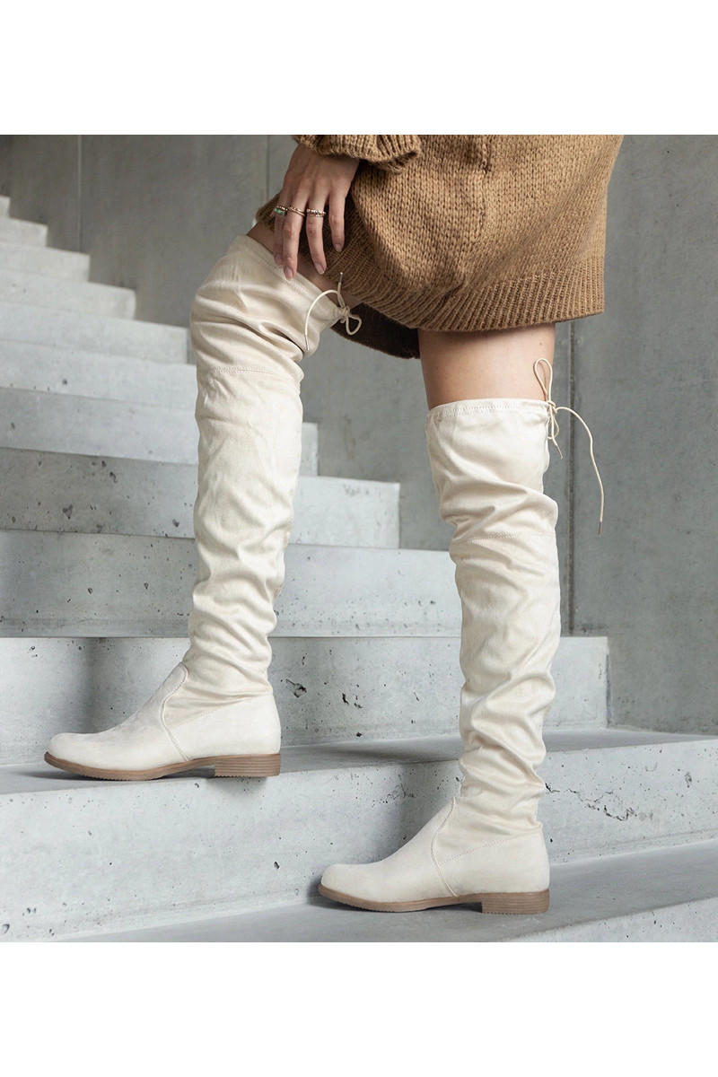 Stivali lunghi beige con piattaforma in ecopelle Hallora