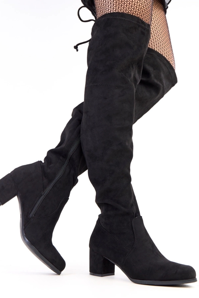 Stivaletti neri in similpelle scamosciata con tacco "Melinos"