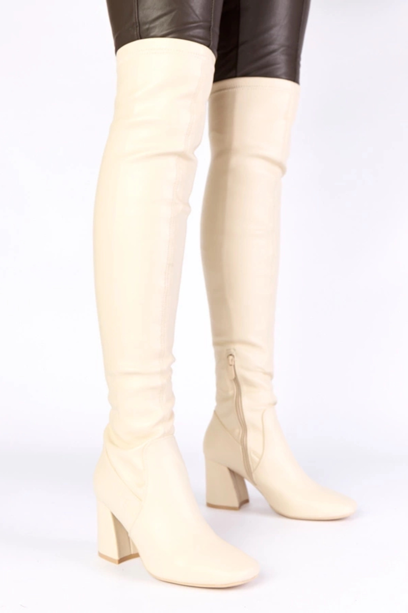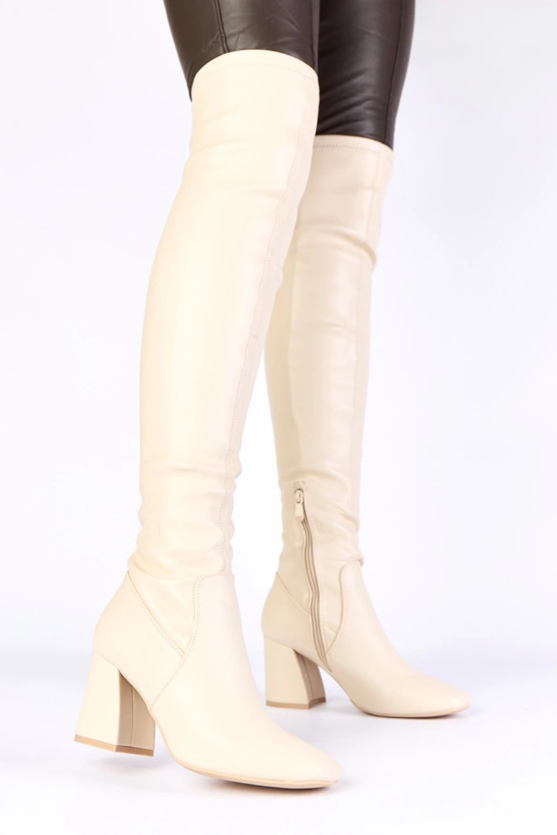 Stivali alti color sabbia sopra il ginocchio con tacco Louna