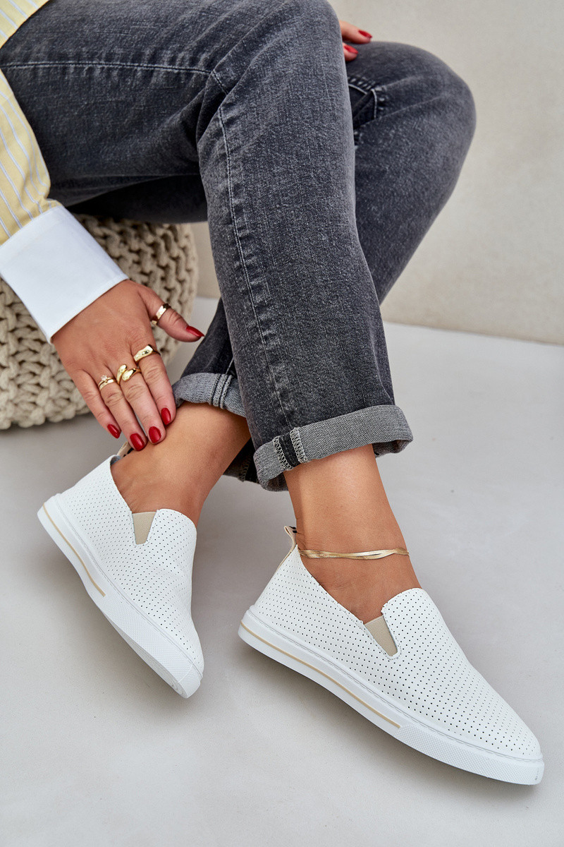 Sneakers da donna in pelle sintetica a slip-on per tempo libero con scritta color avorio Zalinne
