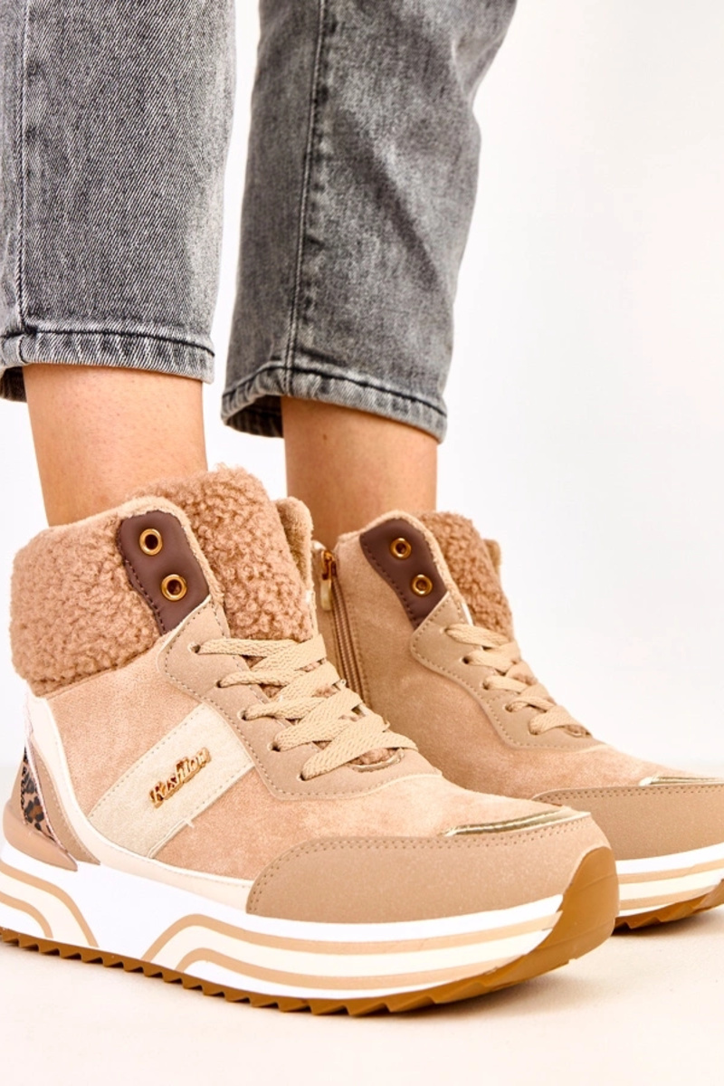 Scarpe sportive alte color sabbia scuro e calde con pelliccia Mirasen