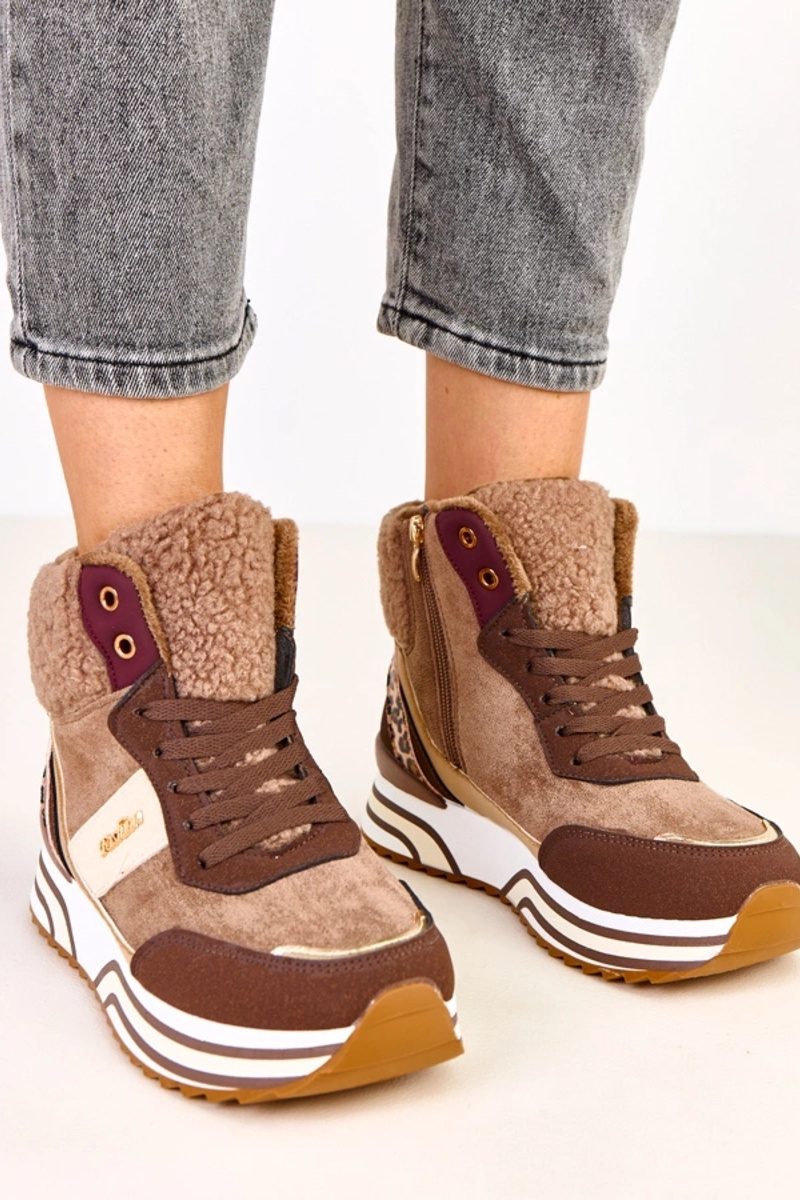 Scarpe sportive alte color marrone e calde con pelliccia Mirasen