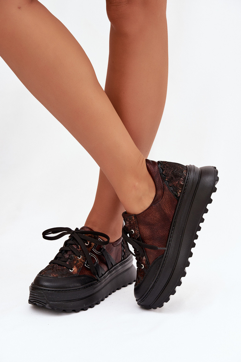 Pelle Scarpe modello sneakers Femminile con una piattaforma Deveciejka 06562-25 CzekoladoAe