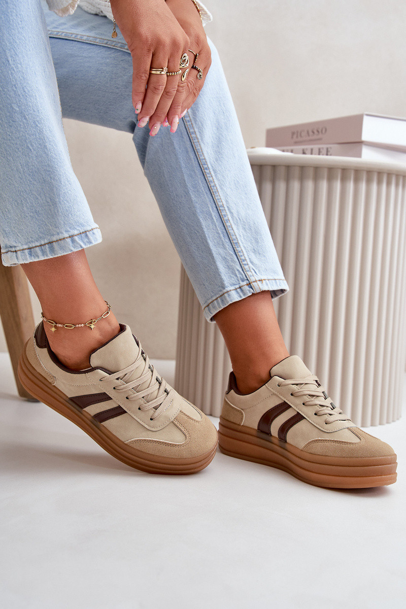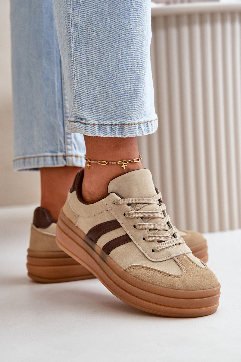 Scarpe modello sneakers Femminile con una piattaforma colore marrone Nesonice