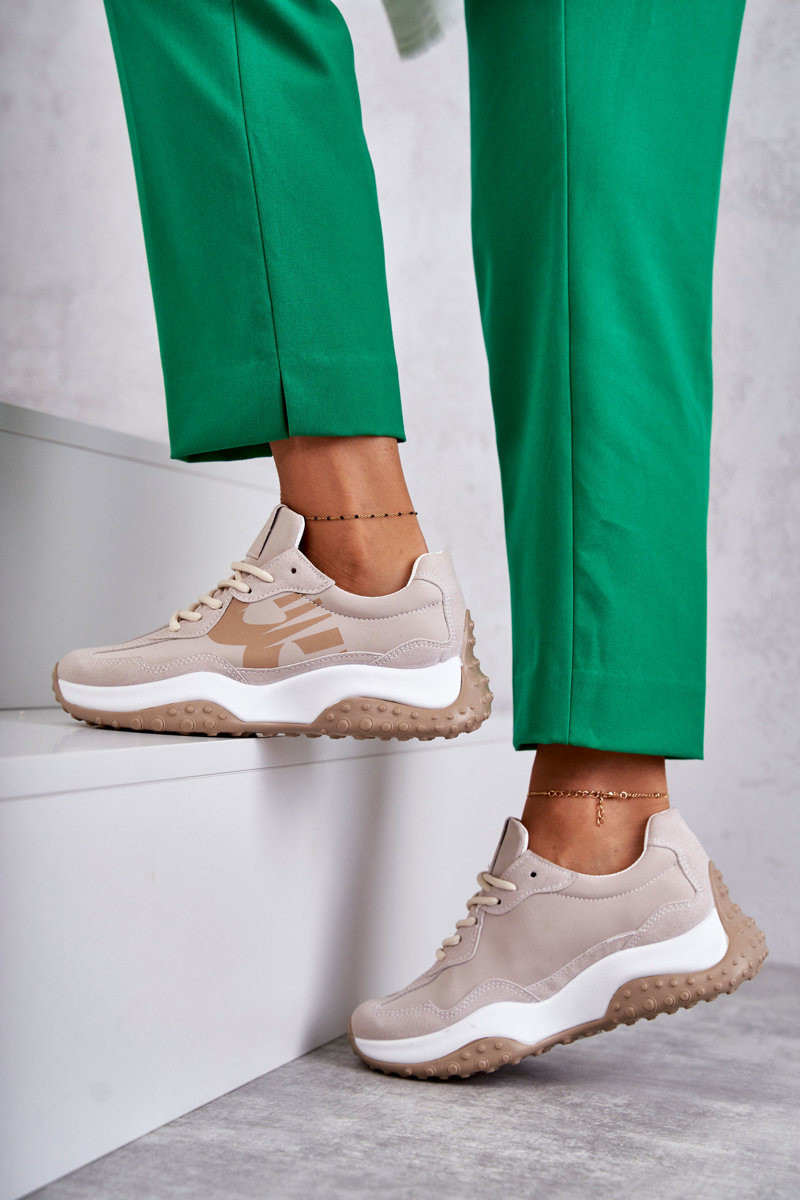 Femminile scarpe da ginnastica con cinghie beige Tolea