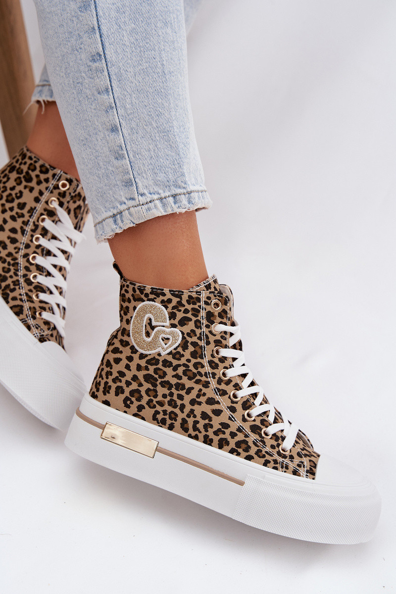 Scarpe per il tempo libero con una piattaforma con motivi di pelliccia di leopardo Meloria