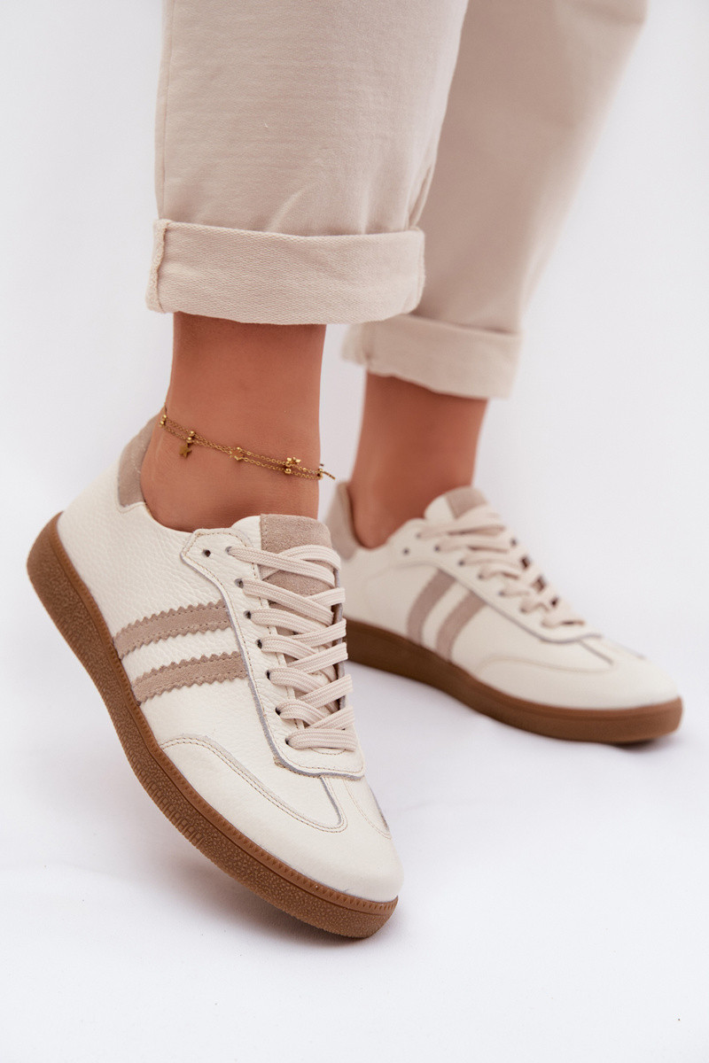 Zazoo N1068 scarpe sportive basse in pelle sintetica color sabbia da donna