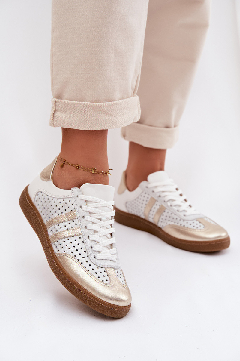 Pelle con elementi traforati Scarpe modello sneakers Femminile Zazoo N1318 grigio-colore dorato