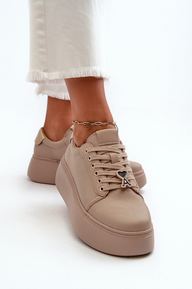Femminile Pelle Scarpe modello sneakers con una piattaforma beige Vinceza 66700