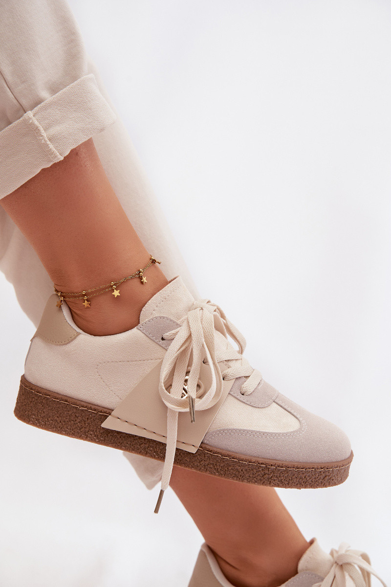 Scarpe modello sneakers Femminile Con decorazioni Detalem beige Kalirina
