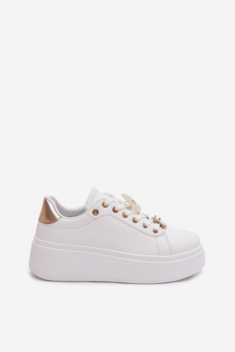 Scarpe modello sneaker da donna con piattaforma e charms Orsetti con cuori bianche e oro Selorissa