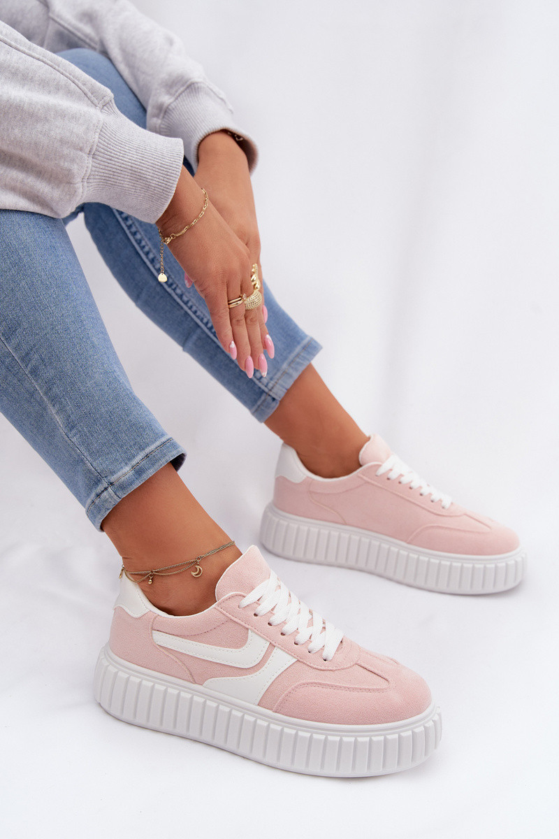 Scarpe modello sneaker da donna con piattaforma in ecopelle rosa Cadrina