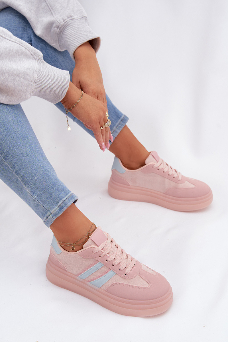 Scarpe modello sneakers Femminile con una piattaforma colore rosa Galleria