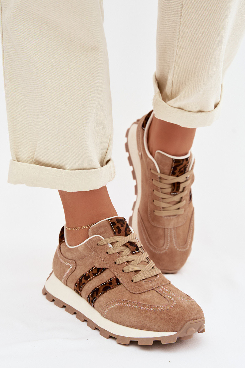 Sneakers in camoscio con plateau e stampa leopardata S.Barski LR61-7071 marroni