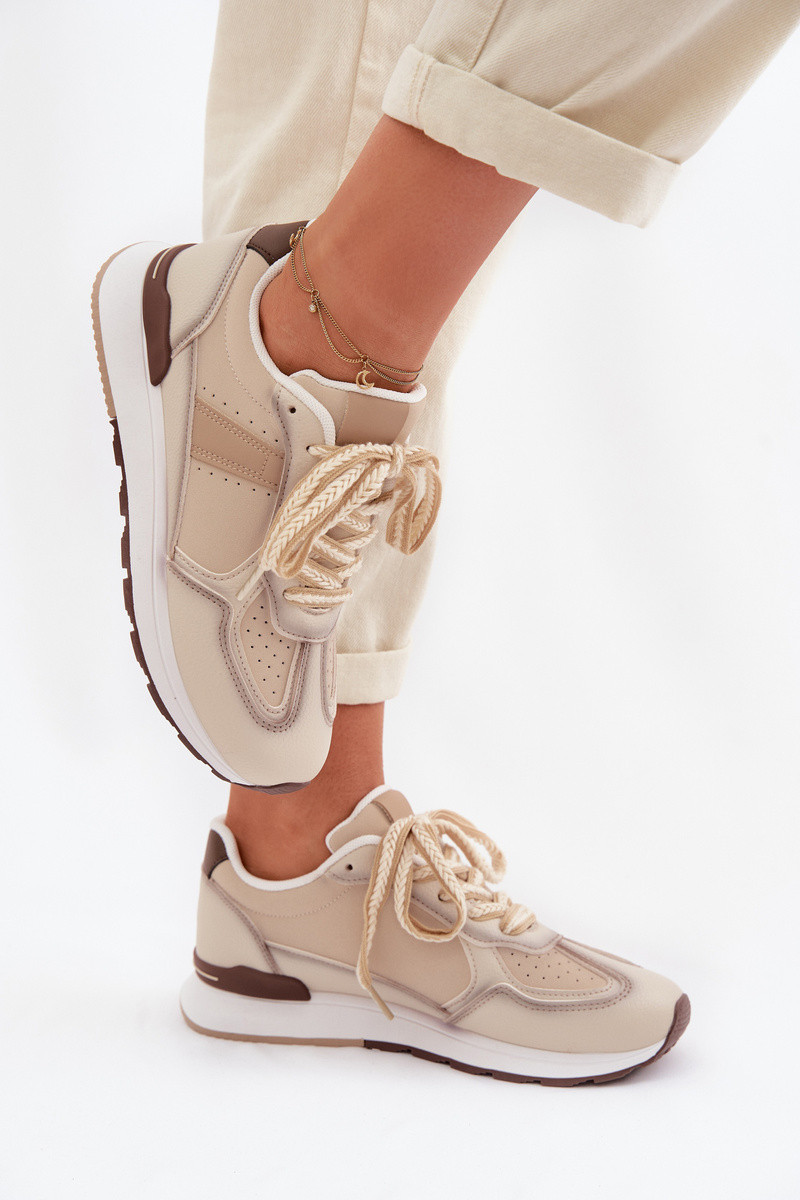 Scarpe sportive da donna in pelle sintetica color sabbia Kelira