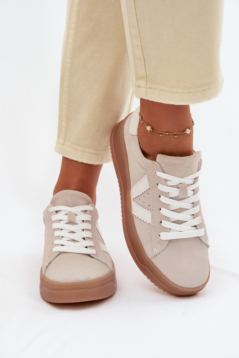 Scarpe sportive da donna in camoscio naturale con piattaforma Vinceza 79597 color sabbia