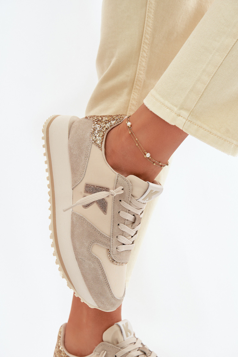 Sneakers in pelle scamosciata da donna con platform Kobbo 100103 color sabbia