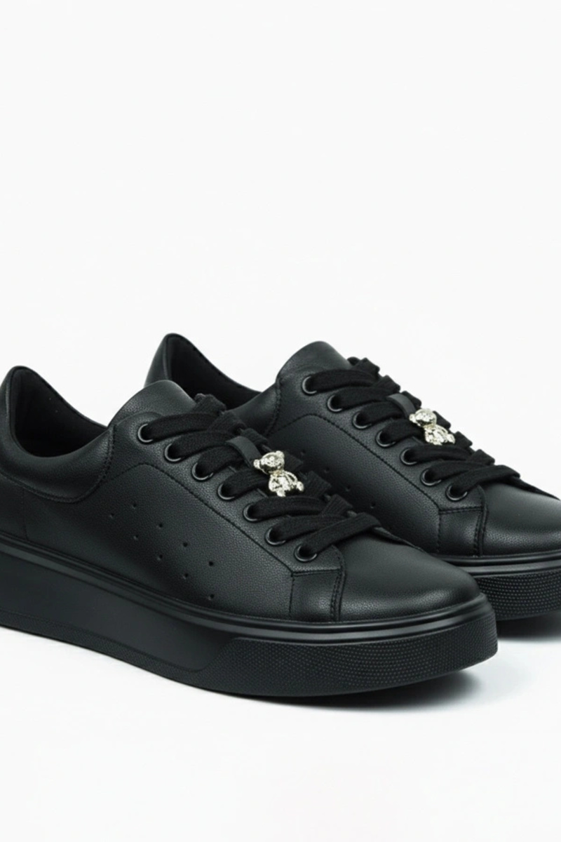 Scarpe sportive in pelle nere con piattaforma Cambell