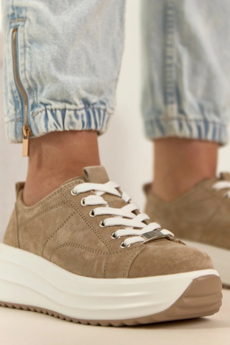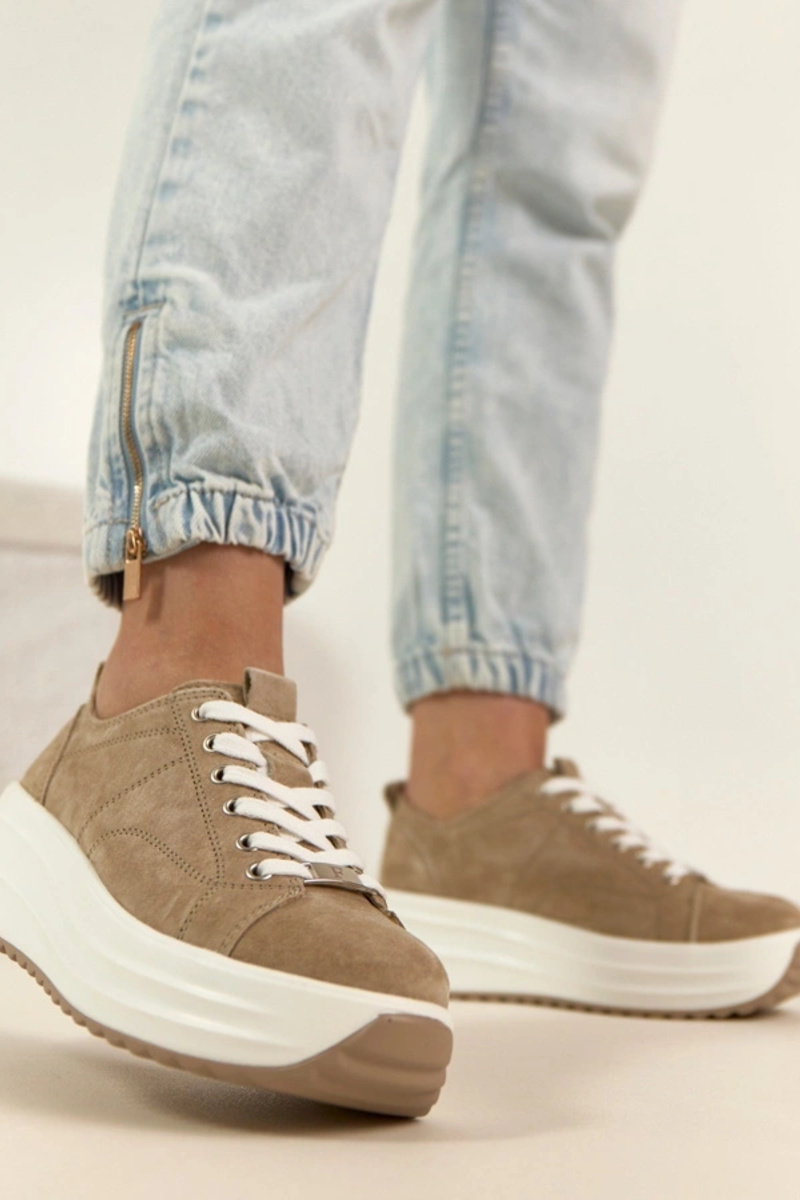 Scarpe sportive in pelle color sabbia a piattaforma Filippo