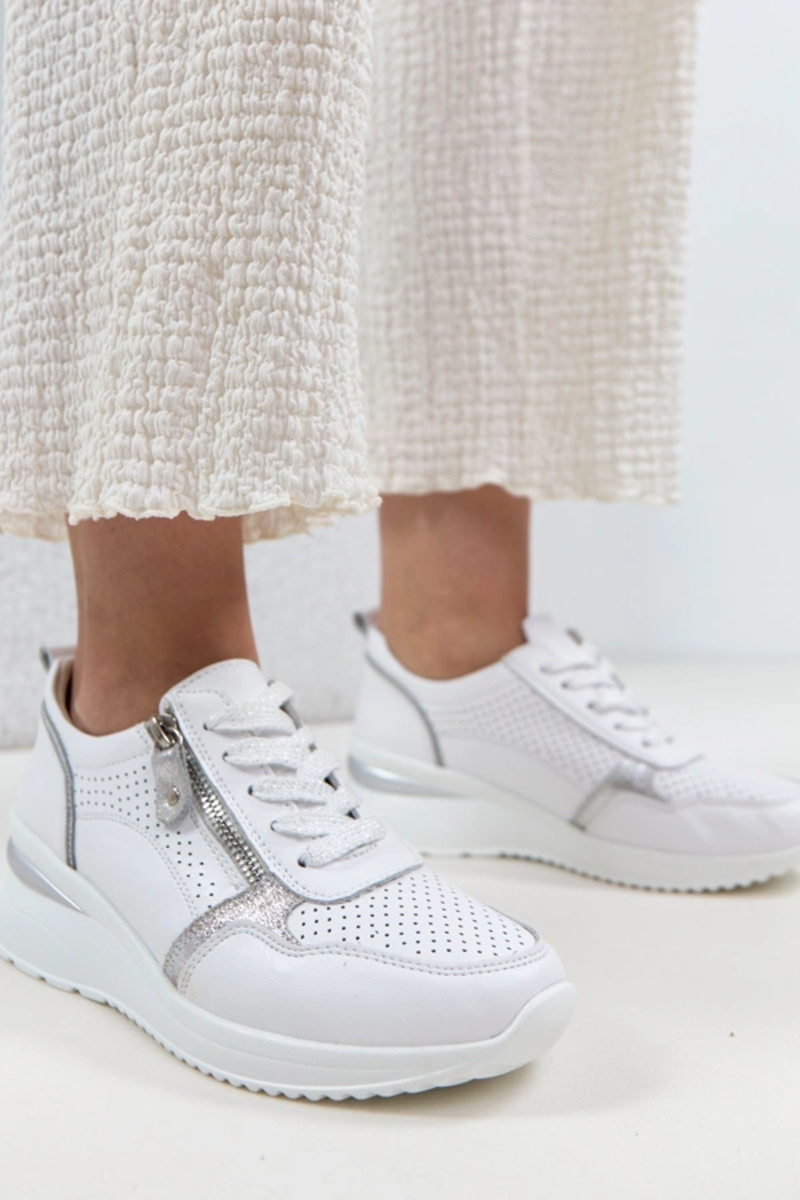 Scarpe in pelle bianche con tacco nascosto Cambell