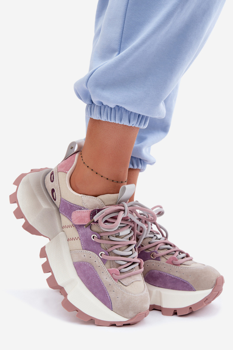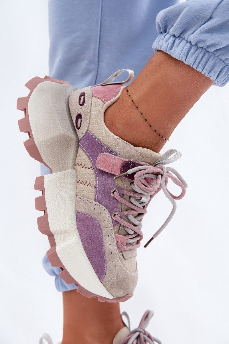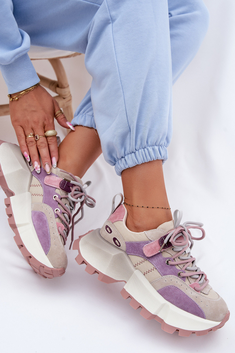 Pelle dalla pelle scamosciata Scarpe modello sneakers Femminile GOE TT2N4026 Colore viola